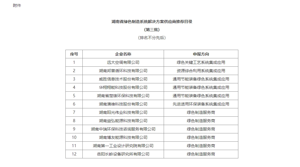 附件:湖南省綠色制造系統(tǒng)解決方案供應商推薦目錄(第三批)