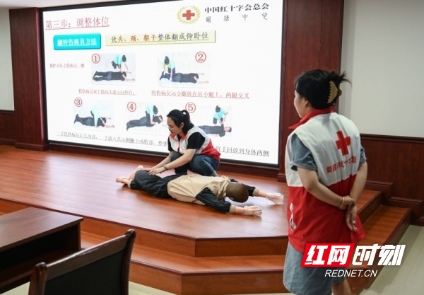 本次培訓(xùn)分為理論知識講解和實際操作兩個環(huán)節(jié),特邀婁底職業(yè)技術(shù)學(xué)院醫(yī)學(xué)部臨床醫(yī)學(xué)院院長譚芳主講。譚芳對心肺復(fù)蘇、氣道梗塞急救法和AED機(jī)使用、海姆立克急救法,災(zāi)害事故、意外傷害逃生避險、常見急癥的現(xiàn)場救護(hù)原則等進(jìn)行了詳細(xì)的講解。