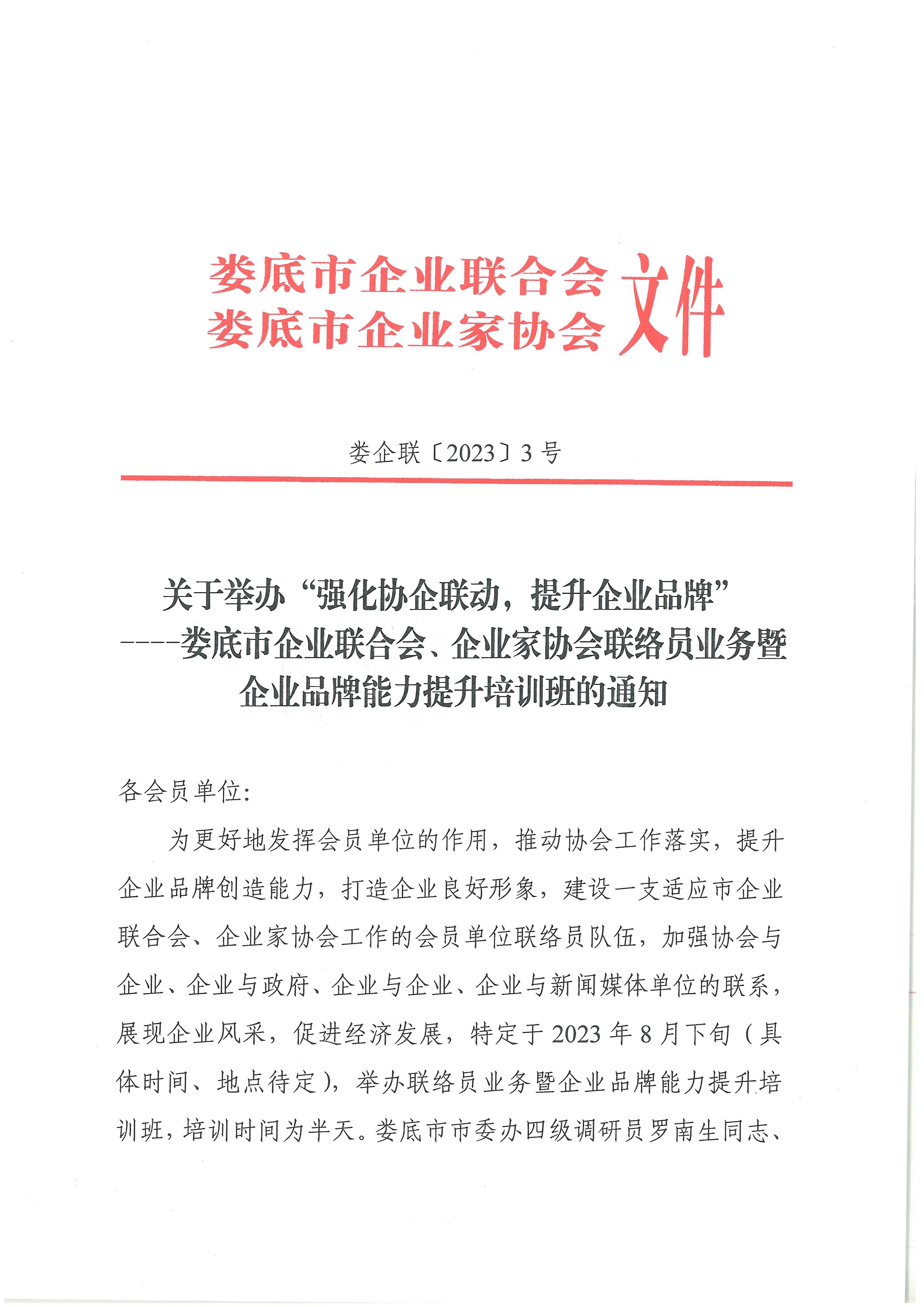 婁底市企業(yè)聯(lián)合會、企業(yè)家協(xié)會聯(lián)絡(luò)員業(yè)務(wù)暨企業(yè)品牌能力提升培訓(xùn)班的通知