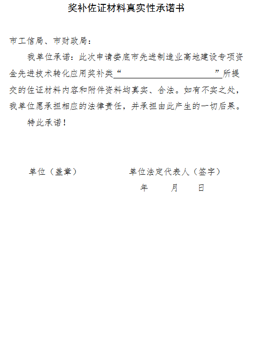 (三)其他要求。各縣市區(qū)須嚴格按照《婁底市先進制造業(yè)高地建設專項資金管理辦法》(婁財企〔2023147號)文件要求認真組織項目申報工作,項目申報材料必須真實齊全。嚴禁違規(guī)推薦,弄虛作假,一旦查實有資料作假行為,不予受理其上報文件,并將影響到對轄區(qū)項目的支持,同時追究申報企業(yè)、審批人員的責任。
