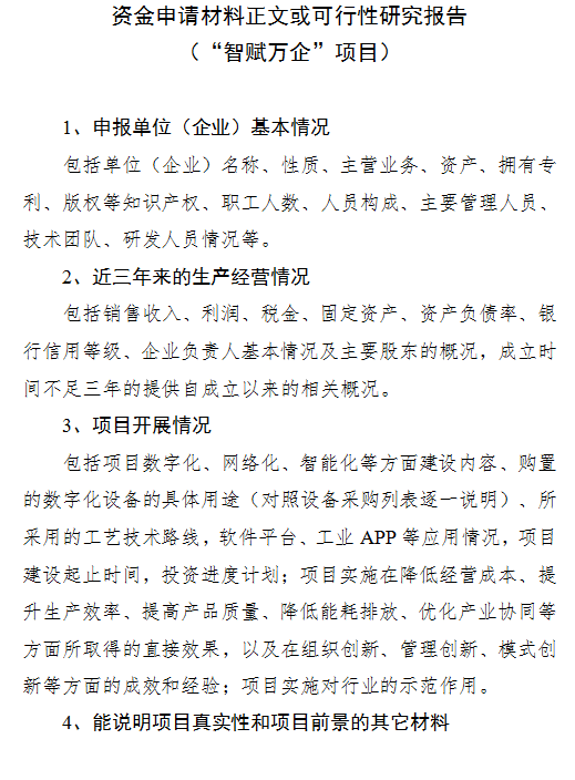 2)“智賦萬企”項目。主要支持企業(yè)數字化轉型、智能制造、工業(yè)互聯(lián)網項目;