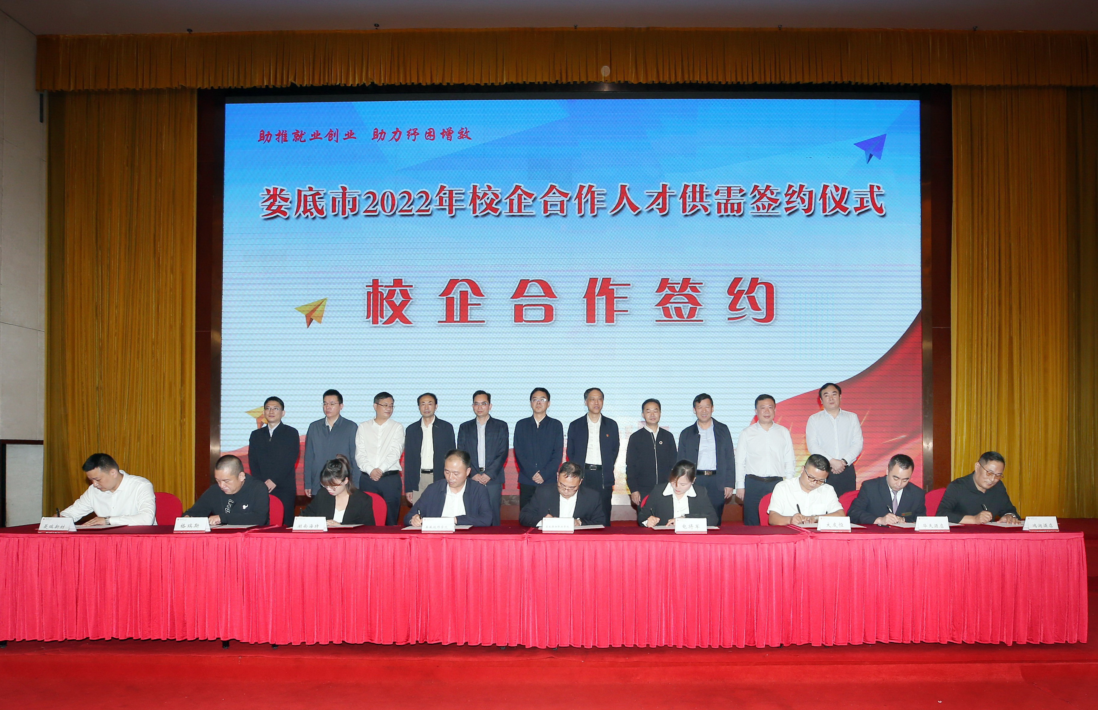 本報(bào)訊  5月28日,婁底舉行校企合作人才供需簽約儀式。湖南人文科技學(xué)院、婁底職業(yè)技術(shù)學(xué)院等4所院校與婁底經(jīng)開(kāi)區(qū)、婁底高新區(qū)等5個(gè)園區(qū)簽訂校地合作協(xié)議,并與20家企業(yè)簽訂校企合作協(xié)議、應(yīng)屆畢業(yè)生就業(yè)意向協(xié)議。市委常委、市委組織部部長(zhǎng)謝忠陽(yáng),市企業(yè)聯(lián)合會(huì)、企業(yè)家協(xié)會(huì)會(huì)長(zhǎng)余明庭等出席。